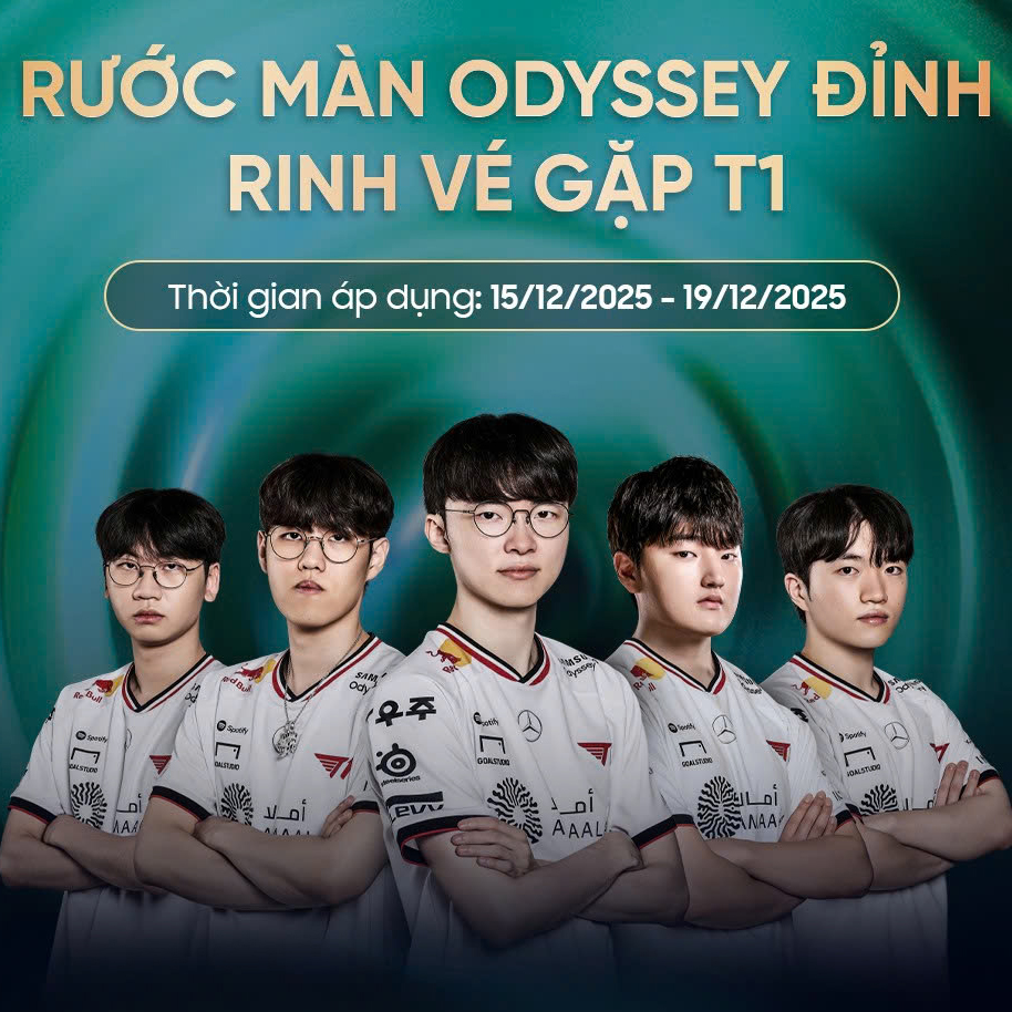 Từ 13/12 đến 19/12/2025, người dùng mua màn hình Samsung Odyssey có giá từ 30 triệu đồng trở lên sẽ có cơ hội nhận vé gặp gỡ đội tuyển T1 tại sự kiện. Thông tin chi tiết được cập nhật trên fanpage Samsung Việt Nam và VPBank.